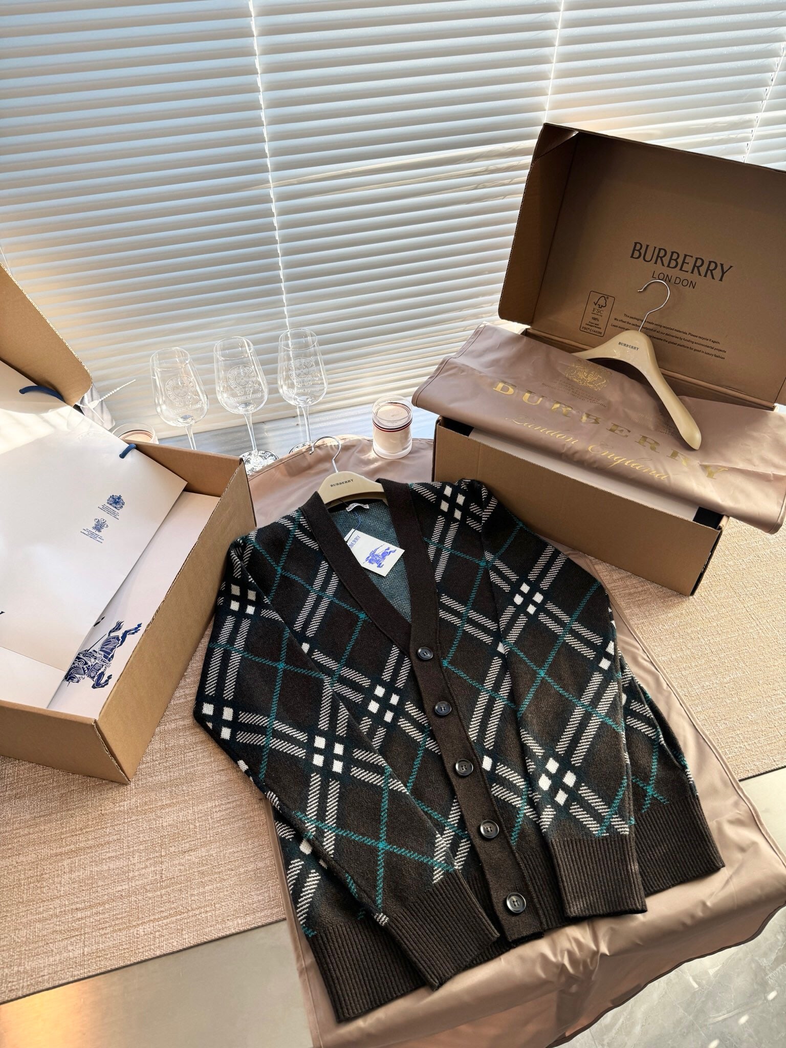 Classic Plaid V-Neck Wool Cardigan<span class="brand-imgs BB"></span>